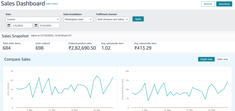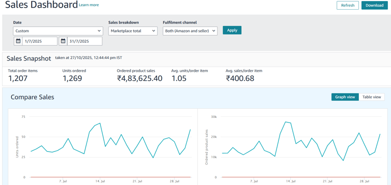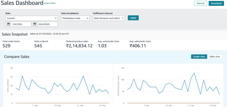 We started with structured Sponsored Product campaigns focused on high-intent keywords, gradually introducing Sponsored Brands and Display campaigns to expand reach. Campaigns were continuously optimized to balance visibility and profitability, ensuring every rupee spent delivered measurable value.